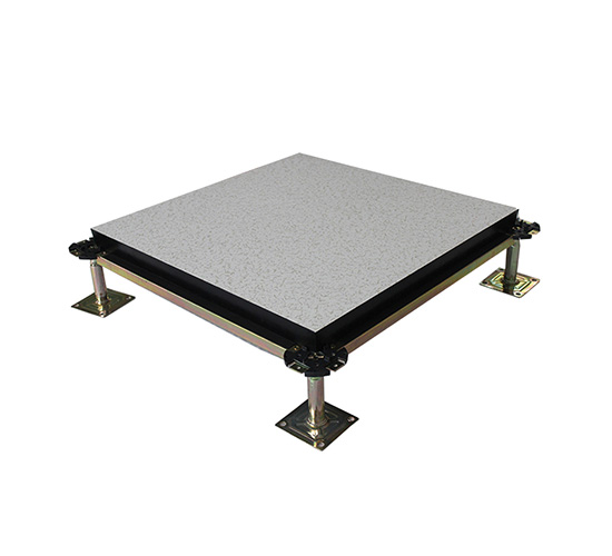 硫酸钙防静电地板基材为干强度硫酸钙板,表面采用HPL/PVC贴面,底面为镀锌钢板,四周黑色PVC封边。